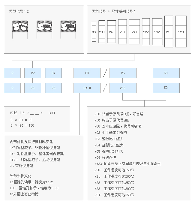 第二代設計的另一種結構,其特征為采用精密加工的黃銅保持架,加強型對稱滾子,額定負荷與C型設計相同,可以與C型設計通用,尤其是大尺寸型號。 |